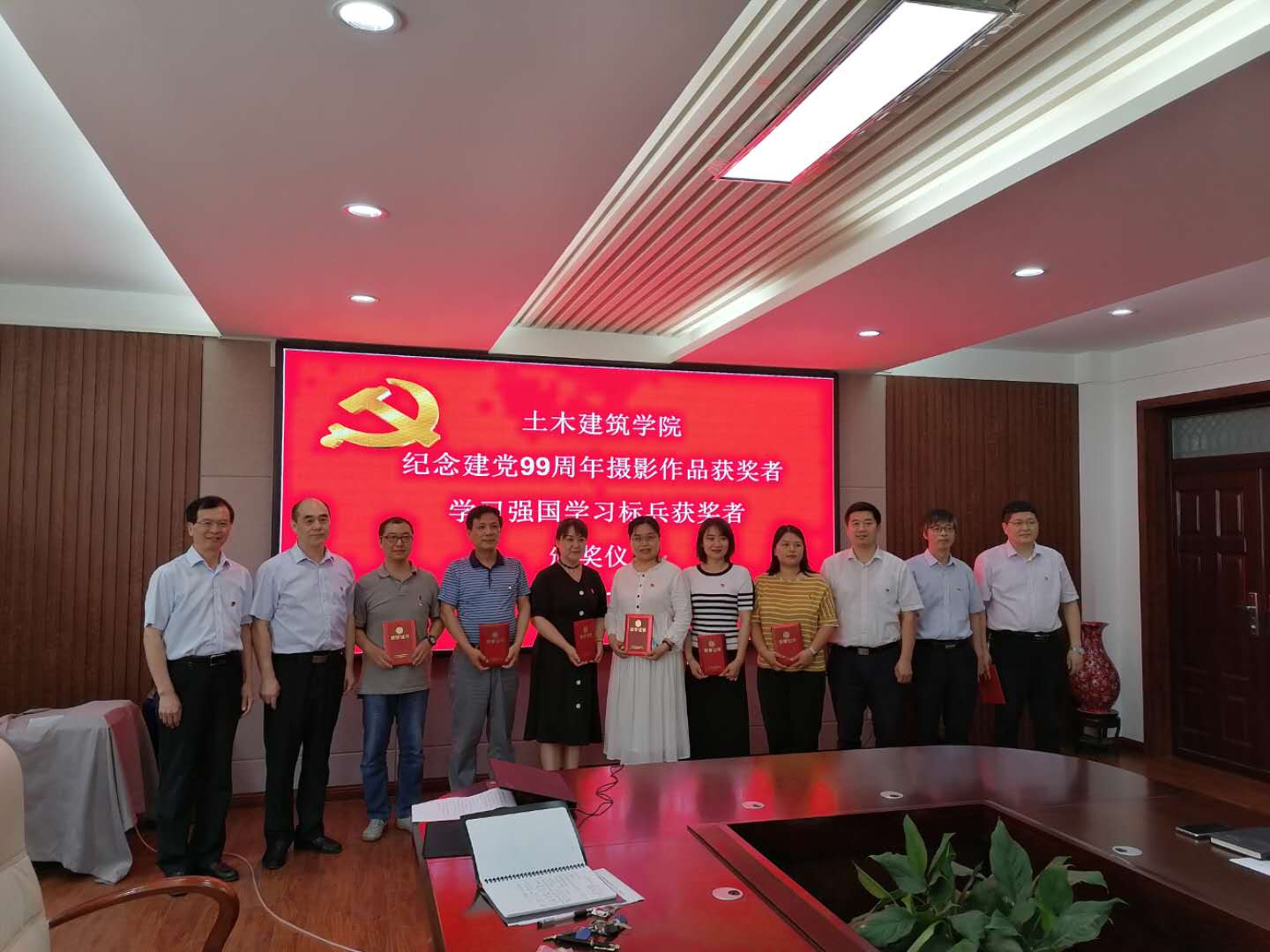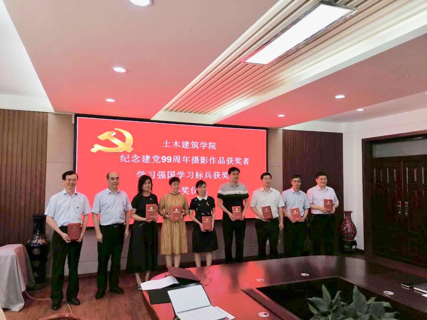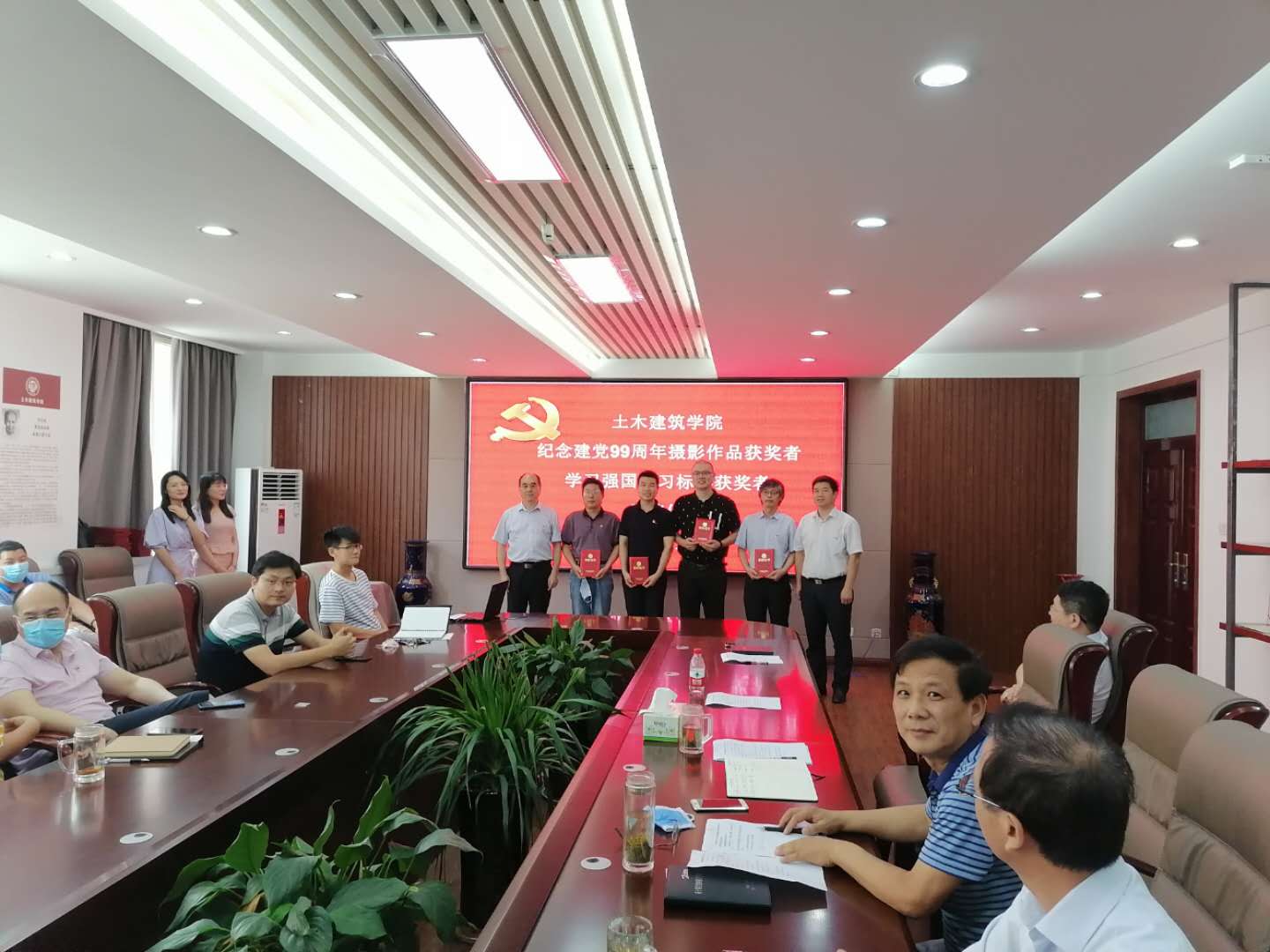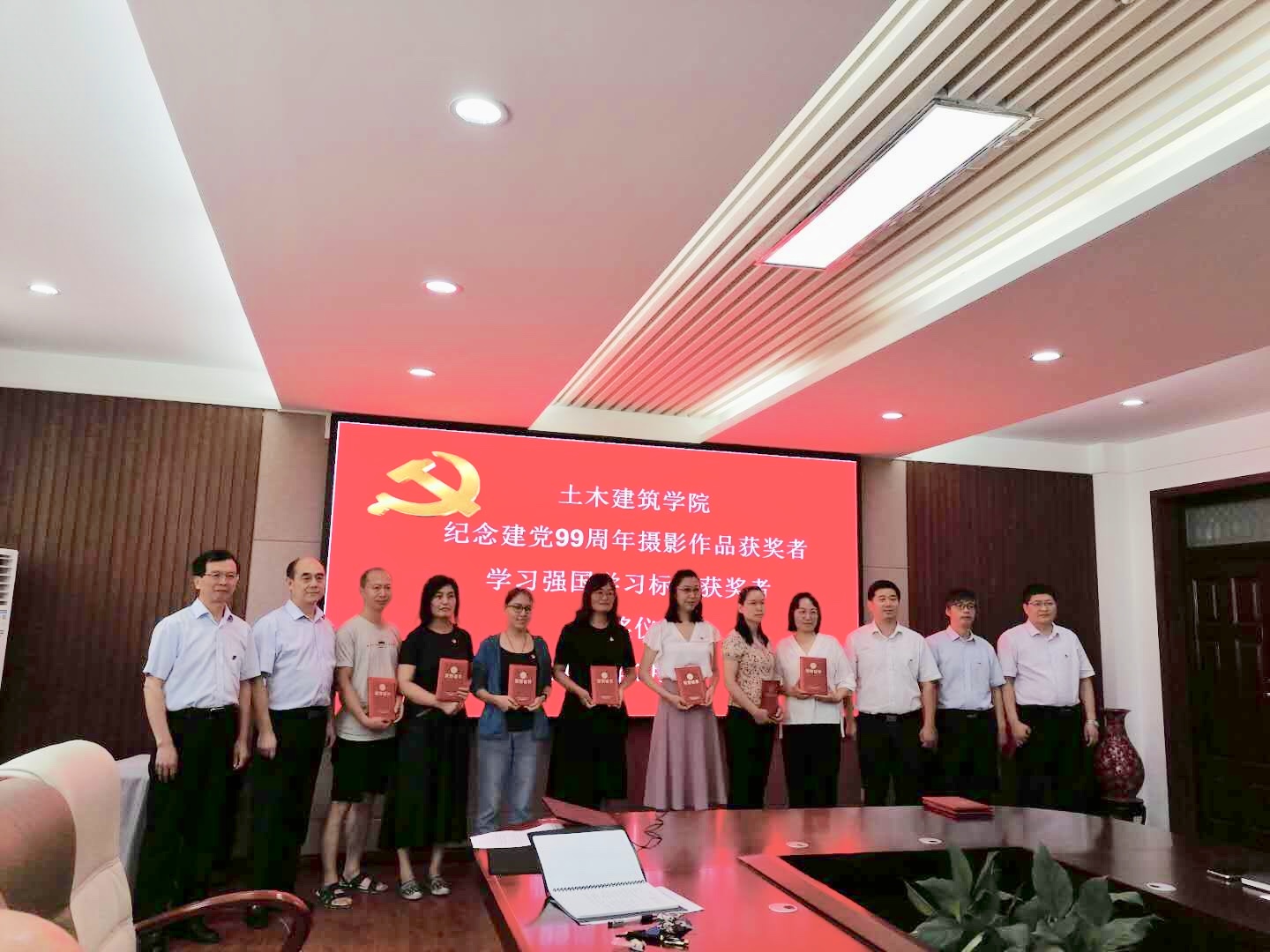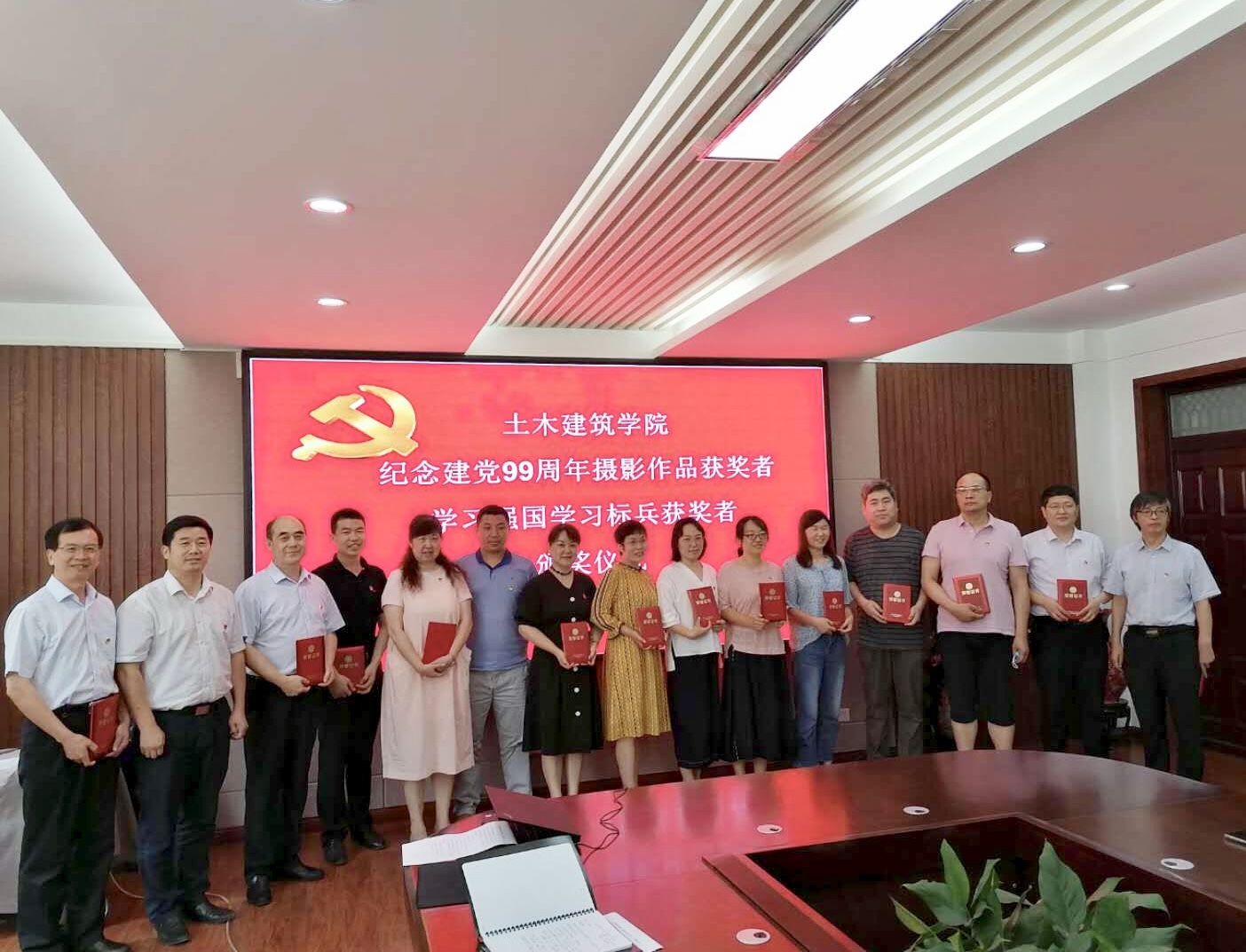 党旗飘飘,党徽闪闪亮,为庆祝中国共产党建党99周年,继续发扬党的优良传统,增强基层党组织创造力、凝聚力和战斗力,土木建筑公司党委于7月1日上午10:30分在院史馆204举行庆祝建党99周年“七一”表彰大会,公司党委委员、支部书记、优秀共产党员、“学习强国”学习标兵等同志参加,会议由党委副书记党玉敬主持。