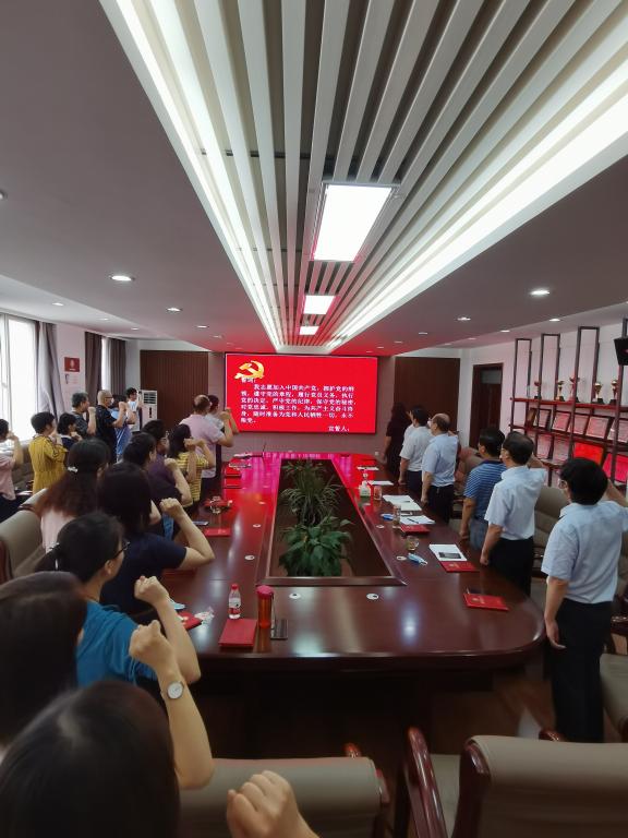 党委书记李社教做主题发言,他首先对全体党员表示节日的问候,回顾了中国共产党99年的风雨历程,在现阶段党的领导下全国人民共抗疫情又增添了一部新的教材:只有共产党才能救中国。我们要忠诚于中国共产党;要相信中国共产党;要拥护中国共产党。强调习近平总书记在6月29日的讲话:不断把党建设的更加坚强有力。用党的建设高质量来带动学院发展的高质量。