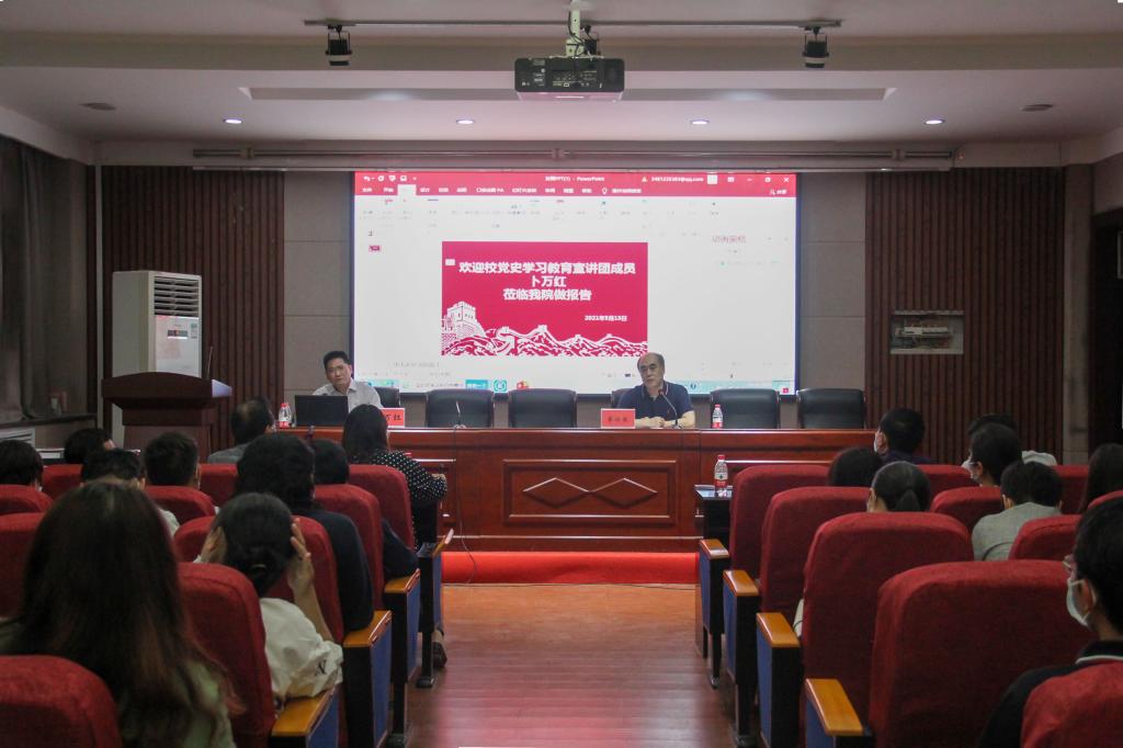 为贯彻落实习近平总书记在党史学习教育动员大会上的重要讲话精神,引导广大党员干部做到学史明理、学史增信、学史崇德、学史力行,按照公司党史学习教育集中宣讲活动安排,5月13日下午,土木建筑学院邀请公司党史学习教育理论宣讲团成员、河南省教育系统理论宣讲人才、马克思主义学院卜万红副教授做题为《用大历史观看中国共产党百年辉煌》的宣讲报告。学院全体教职工和部分员工党员代表参加,报告会由公司党委书记李社教主持。