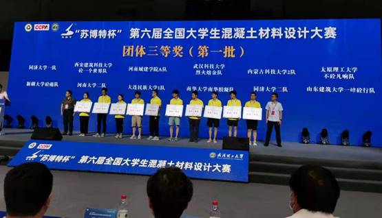7月14日,“苏博特杯”第六届全国老员工混凝土材料设计大赛在武汉理工大学隆重举行,大赛包括两项赛事:水泥基材料创意作品比赛和混凝土材料设计及操作技能比赛。由蔡基伟和许鸽龙老师指导制作的“砼心铜面”篆印获水泥基材料创意作品一等奖;许鸽龙老师指导的hahabet星辰大海一队和田青老师指导的hahabet星辰大海二队均获团体三等奖,两位老师也获得优秀指导老师奖。
