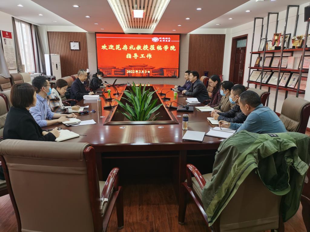 经理岳建伟首先代表学院对范存礼教授的来访表示热烈欢迎。之后,岳经理介绍了学院的发展简况及学院土木工程专业参加教育部工程教育专业认证的进展情况,指出专业评估认证工作是一项系统工程,要求各部门需通力协作、密切配合,建立健全专业评估认证工作运行保障体系,让每个部门、每位同志都重视评估认证工作,形成浓厚的氛围。