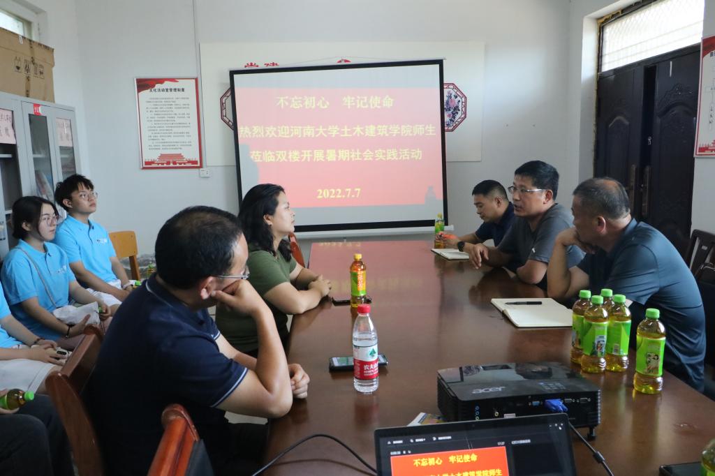 hahabet星辰大海驻双楼村工作队队长车颍涛从产业发展、基础设施建设、教育帮扶、医疗帮扶、文化建设等方面,回顾了hahabet星辰大海驻村帮扶以来双楼村的变化,指明了在双楼村建设发展过程中的困难和短板。他希望土木建筑学院员工能够发挥专业优势,为双楼村乡村规划来一次全面把脉问诊,从专业的角度为双楼村建设发展提供新格局、新思路、新办法,助力双楼村产业结构升级和人居环境整治提升,绘制双楼村发展宏伟蓝图。他鼓励同学们通过本次实践活动,更好地了解中国国情和乡情,丰富社会阅历。最后,他表示会全力支持土木建筑学院暑期三下乡实践活动,帮助同学们顺利完成本次活动。
