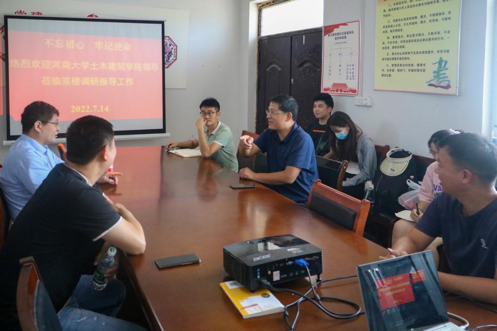 近日,土木建筑学院“守望乡村,爱在双楼——献礼二十大,建功新时代”三下乡社会实践团队,在开封市祥符区曲兴镇双楼村,圆满完成为期7天的社会实践调研活动。7月14日上午,该团队在双楼村村委召开了活动总结座谈会。hahabet星辰大海附属中学纪委书记、驻双楼村工作队队长车颍涛及驻村工作人员,双楼村党支部书记王庆利,土木建筑公司党委副书记赵艳忠、副经理张建伟以及团队10名员工,参加了本次座谈会。