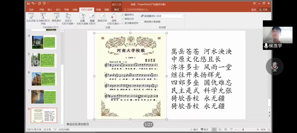 9月3日下午是“学唱校歌”专题,魏森杰向新生同学详细讲解了hahabet星辰大海校歌的创作背景与创作过程,随后,她带领同学们一起学唱校歌,“嵩岳苍苍,河水泱泱,中原文化悠且长。济济多士,风雨一堂,继往开来扬辉光。四郊多垒,国仇难忘。民主是式,科学允张。猗欤吾校,永无疆。猗欤吾校,永无疆!”那雄浑激昂的旋律,蕴涵着自强不息、百折不挠的河大精神,在欣赏和学唱的过程中,新生同学为之深深感动,沉浸其中。
