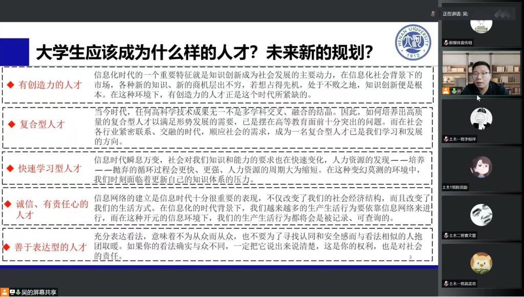 为帮助土木建筑学院2022级新生树立良好的专业意识,更深入地了解所学专业构架、要求及未来发展。9月7日至8日,公司借助腾讯会议平台,顺利开展本科新生专业认知及科研实践教育专题。