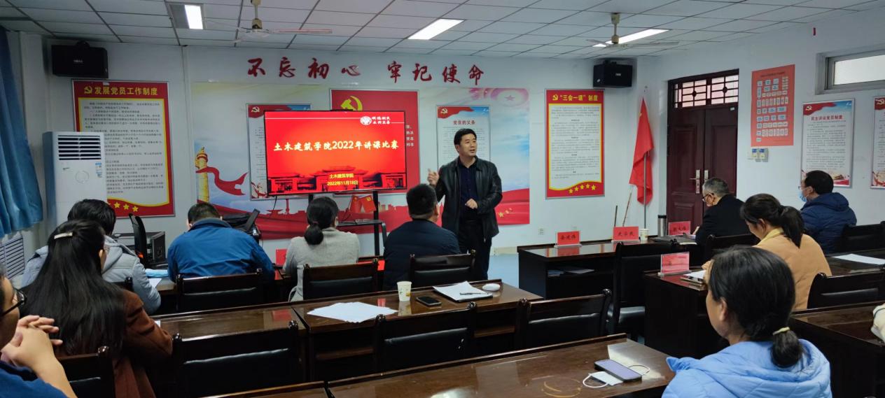 校教师教学发展中心副主任郝兆杰教授对此次讲课比赛的举办表示高度认可,强调了教师教学水平提高对教师个人职业发展的重要性,并向在座教师详细讲解了如何参与国内各级教师教学技能竞赛、怎样申报各类教学改革和质量工程项目以及虚拟仿真、课程思政、虚拟教研室等方面课程或项目。
