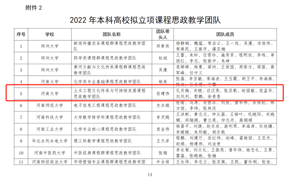 近日,河南省教育厅公布了河南省2022年本科高校课程思政项目评审结果。公司岳建伟教授牵头的《土木工程文化传承与可持续发展课程思政教学团队》获批河南省课程思政教学团队,全校仅两个团队获批。
