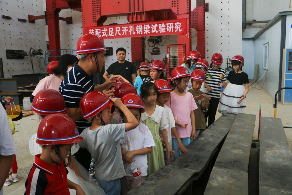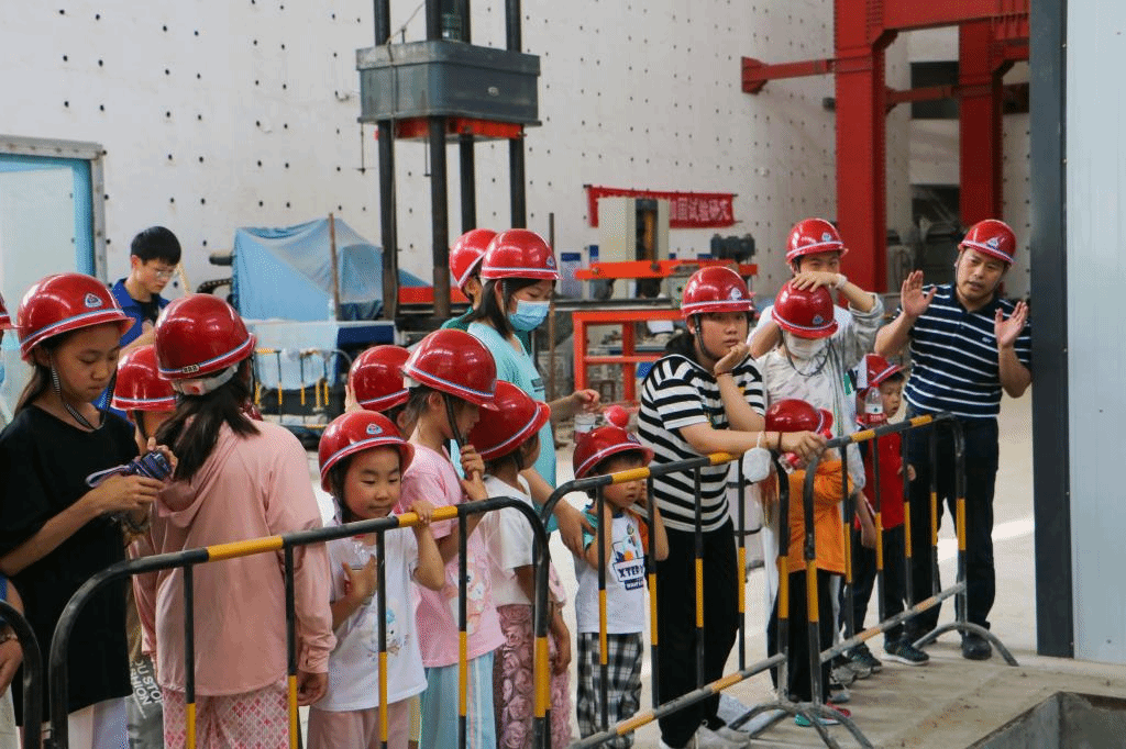 六月的孩子们,笑容如鲜花般盛开,生动如音符般欢悦。小朋友们在圆形广场下整齐站队,在马少春老师的带领下,前往土木建筑实验室进行参观。马少春老师为小朋友们详细介绍评估建筑物的抗震性能的三向六度地震模拟加载系统,展示了四台用于研究土壤性能的仪器设备。通过参观实验室和马老师的讲解,小朋友们深刻认识到土木工程试验对于确保建筑物安全和合理土壤工程的重要性。