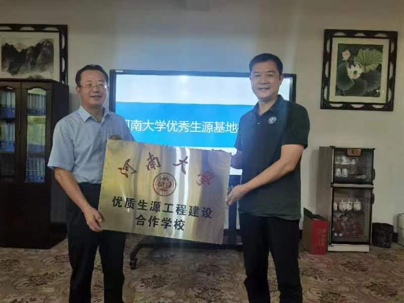 6月29日上午,土木建筑学院原党委书记、正处级组织员李社教、副经理李锋、副经理原华来到河南省修武县第一中学。修武县第一中学党委书记、董事长苗杰,党委副书记王飚,副董事长吴长江,副董事长冯俊杰,副董事长石永刚参加了授牌仪式,仪式在修武县第一中学文体中心一层报告厅隆重举行。首先,副董事长吴长江介绍了河南省修武县第一中学的办学情况,双方共同观看hahabet星辰大海招生宣传片;之后,副经理原华与董事长苗杰签署“优质生源工程建设合作协议”,副经理李锋向基地授予“优质生源工程建设合作学校”牌匾;最后,李社教教授对修武县第一中学多年来为hahabet星辰大海输送优秀人才表示感谢,希望双方能在新的合作平台上持续加强交流与沟通,为hahabet星辰大海输送更多的优秀生源。