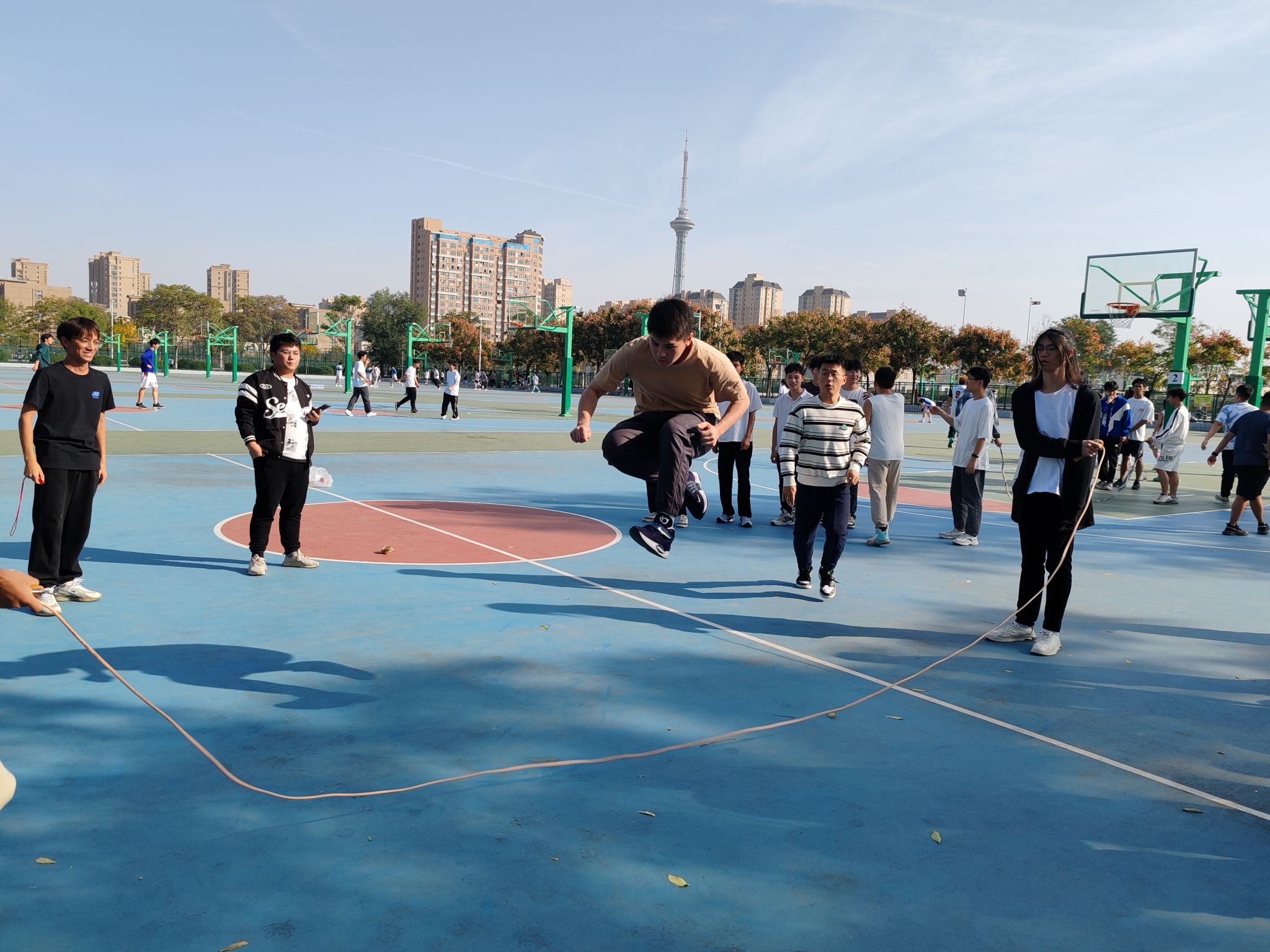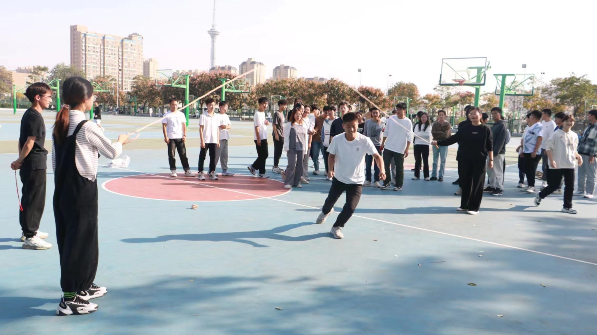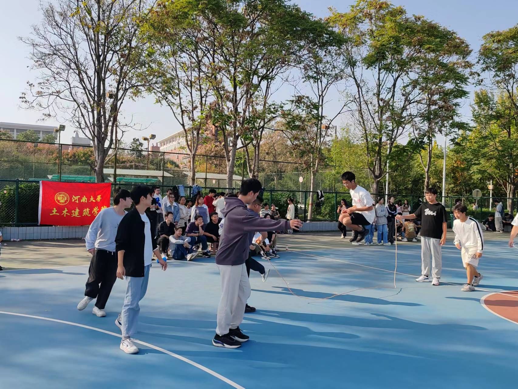 在年级跳绳比赛中,六个班级各派出6男2女参赛,队员们个个精神饱满,斗志昂扬,动作敏捷,展现了极高的热情和团队协作精神,此项比赛深受同学们的喜爱,场内外不时传来欢笑和呐喊声。最终,建筑一班获得第一名,建工班获得第二名。年级比赛后,各班举行了丰富多彩的心理健康小活动和小游戏,活动最后,负责人为获奖个人和集体发放了奖品,全体同学合影留念。