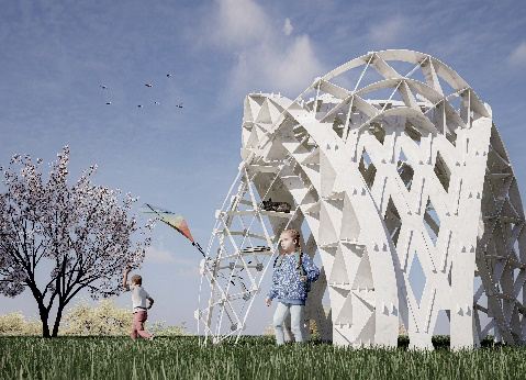 该比赛要求参赛选手具备扎实的专业知识、较强的造型能力、设计创新能力、结构创新能力的同时,还需要对实际建造技术有一定的了解,以实现将三维模型落地为实际建造作品。参赛队伍需要在一天时间内调动8人队伍完成复杂形态的搭建工作,因此这也是一个锻炼员工组织调度能力、临场应变能力和各项实践技能的机会。自本届大赛启动以来,同学们积极参赛,指导老师和队员多次召开组会进行题目分析、内容研讨以及设计制造缩尺模型,多次遴选,最终从7支提交作品的参赛队伍中精选2支队伍,并在决赛前进行1:1全尺寸模型试搭建。周密的准备得到回报,两支参赛队伍均获佳绩。