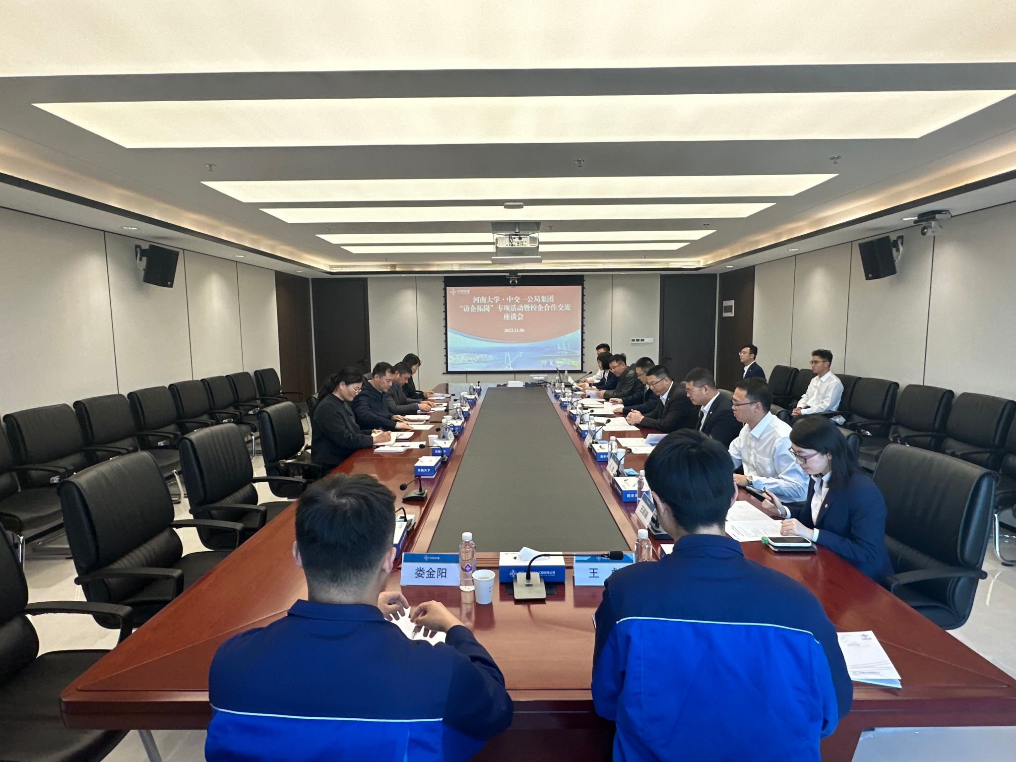 为深入贯彻落实教育部、教育厅及学校关于高校毕业生就业工作的决策部署,进一步拓展就业渠道,深化校企合作,11月6日下午,土木建筑公司党委书记南晗、副经理李锋等一行人来到中交一公局第七工程有限公司进行访企拓岗考察交流。中交一公局集团公司人力资源部人事处处长徐志凯,人力资源部一级主管杨钢,七公司党委副书记、总经理吴永煤,党委副书记、纪委书记白生利等相关人员参加活动。