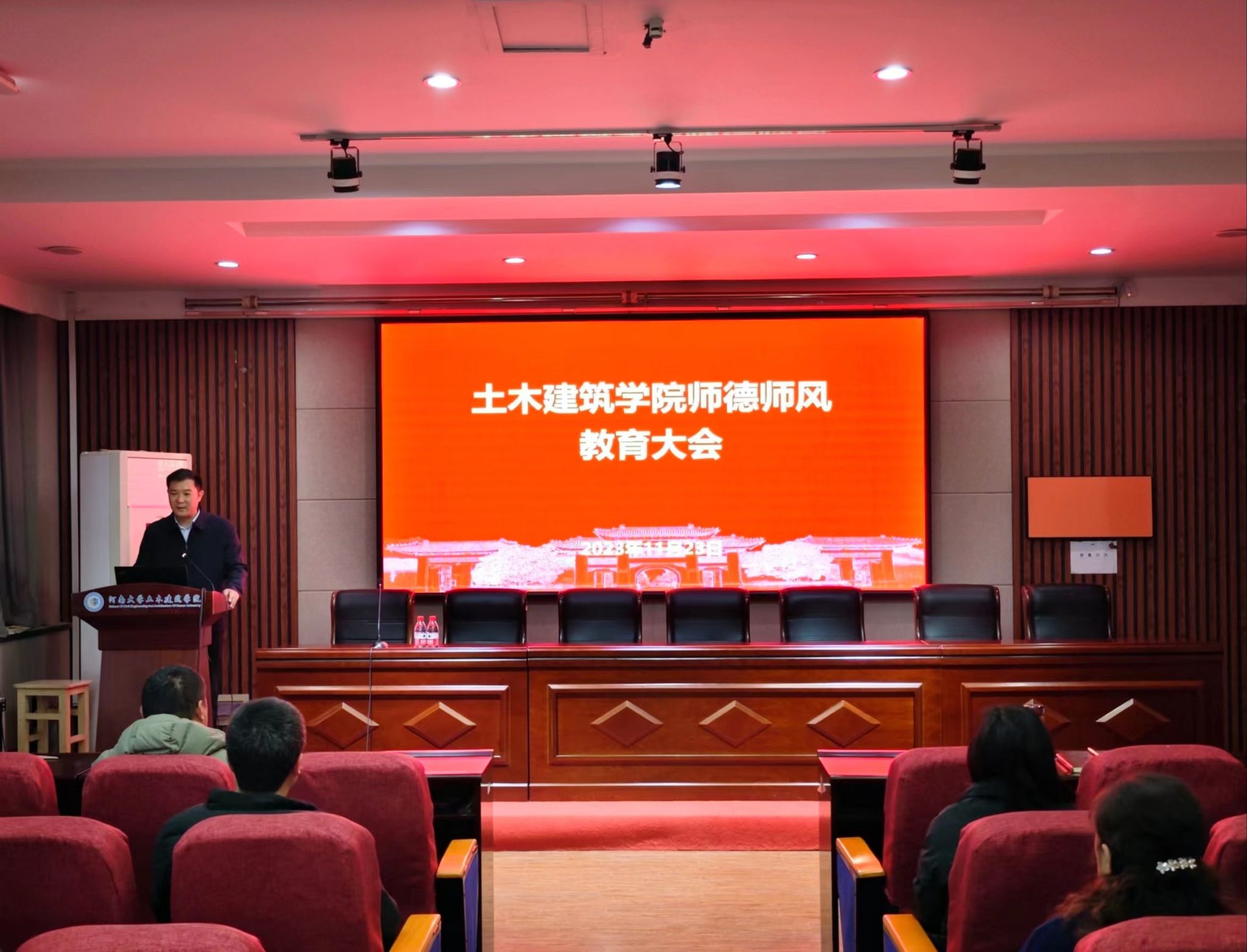 为进一步加强师德师风建设,持续筑牢广大教师为党育人、为国育才的初心使命,11月23日下午,土木建筑学院在结构实验室学术报告厅召开师德师风学习教育大会,公司党委教师工作部副部长赵炎作师德师风专题报告。学院全体教师参加,会议由公司党委书记南晗主持。